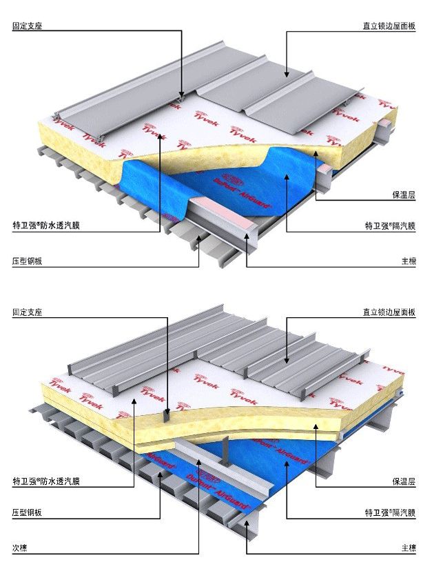 基于杜邦™ Tyvek® 特卫强® 材料的金属屋面防水透汽解决方案