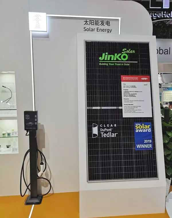 (2019年11月5日,中国上海)在第二届中国国际进口博览会,杜邦光伏及氟材料事业部携创新光伏材料产品参展,展示长期致力于推动全球可再生能源发展的成果。在展会上,基于杜邦™ Tedlar® PVF透明薄膜背板的晶科高效双面组件Swan,将为新能源汽车充电桩提供清洁高效的太阳能电力。太阳能充电桩可大幅降低能源使用费用,更有助于缓解能源和环境压力。