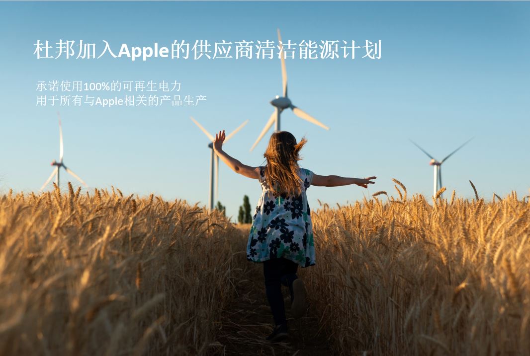 “杜邦公司很荣幸加入Apple的供应商清洁能源计划,” 杜邦电子与工业事业部总裁Jon Kemp表示, “我们共同努力,支持过渡到使用清洁能源,并积极应对气候变化。可持续性发展始终是我们业务的重心。我们致力于与客户和供应商合作,推动清洁电力的普及,并减少电子行业价值链对环境的影响。”