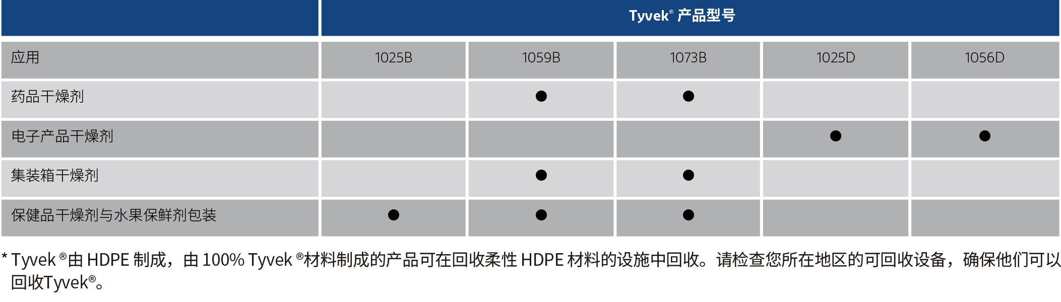 医疗级Tyvek® 属于化学惰性材料,其制成的干燥剂包可用在受监管的保健产品包装中。