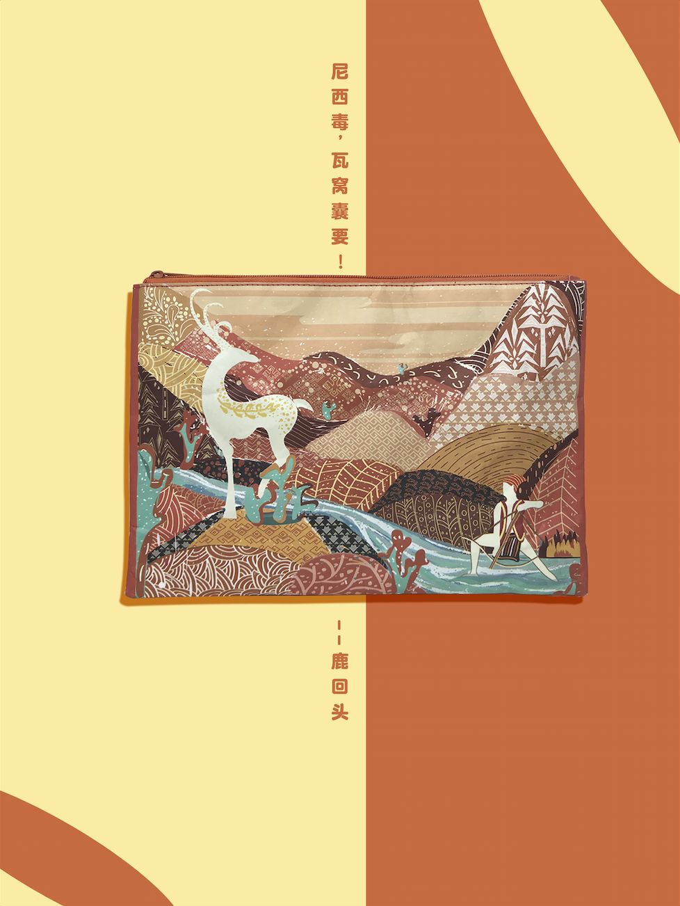 鹿回头源自海南的爱情神话故事,梁慧琳想用图画的形式,让人们对海南文化的印象更深刻。黎锦的元素,突出海南少数名族文化;色彩鲜艳丰富,体现海南特定的区域性和神话故事的氛围;两个主体物“鹿”“人”,用来突出故事情节。