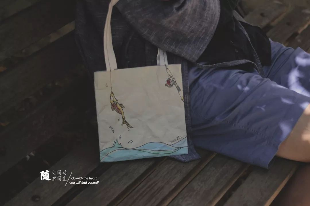 通过插画的方式,将托特包的手提袋与画面相互联系,赋予人与画面诙谐的交互关系。采用随笔的绘画方式,画面放送,内容选取自然、愉悦的生活小插曲,同时结合Tyvek® 柔软、轻巧的特性,从视觉到触觉带给使用者随心、舒缓的感受,使人在现代快节奏的生活中能找到随适的慢节拍。
