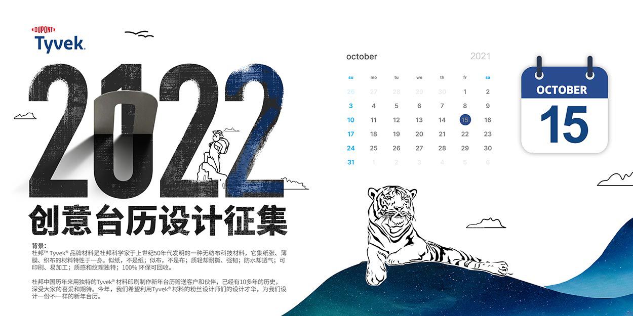 征集内容: 以杜邦™ Tyvek® 为主要材料设计一款新年台历。参与者需提交电子稿设计方案(包括创意设计、结构设计和物料清单),可直接用于制作生产。